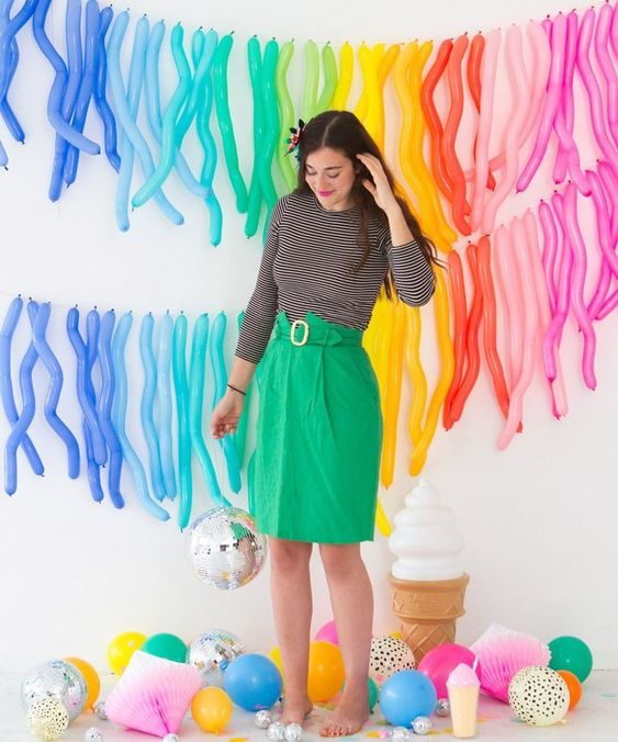 Balloons aren’t just for poppin’! These long colorful balloons make the cutest and most colorful party backdrop.