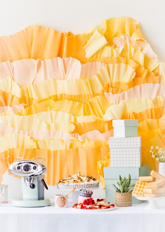 Who doesn’t love ruffles? Using a wide crepe paper you can create giant ruffles to decorate your walls with festive decor.