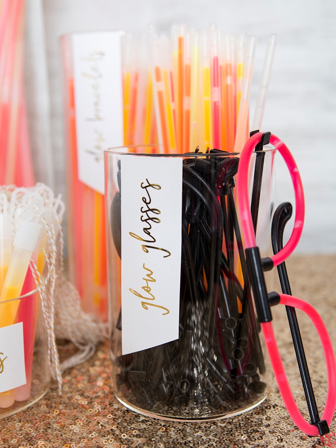 Get the party started with some fun dance floor accessories, like glowsticks! This is such a fun way to amp up your dance party and get your guests pumped to dance.