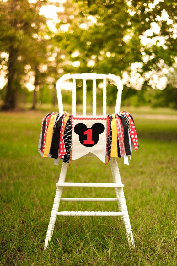 I love decorated highchairs! They are so cute and fun, plus they add a special touch to cake photos. This Mickey themed banner is a festive touch to your little one’s birthday celebration.